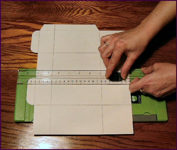 First, start with a 12x12 cardstock, or any paper, but choose one that is sturdy, not flimsy. Measure where your folding lines and cutting lines will be. I drew thick lines across mine to make it clear for you but you could just mark with tiny dots.